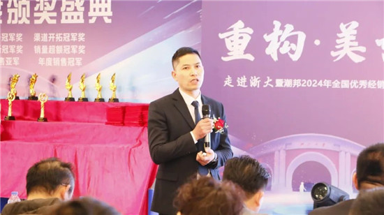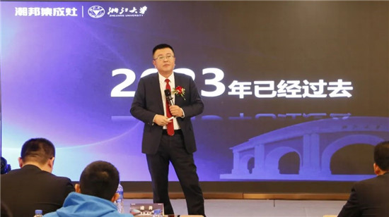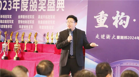 1月21日,“重構•美好”潮邦2024年全國優秀經銷商峰會在浙江大學(海寧國際校區)隆重召開。浙江潮邦廚具電器有限公司董事長張金祥、浙江大學何教授、營銷副總逄勇、制造總監張偉達、銷售總監瞿業秀、市場總監歸袁峰、生產部長許加生、品質部殳葉浩、招商部李方銀、售后部馬德超等公司領導以及來自全國各地的優秀經銷商齊聚一堂,共襄盛舉,此次會議,潮邦以“重構·美好”為主題,深刻復盤2023年度企業整體發展狀況,在總結過去的基礎上全面部署了2024年的戰略規劃,為所有經銷商接下來的著力點指明了方向,提供了更多的發展思路。