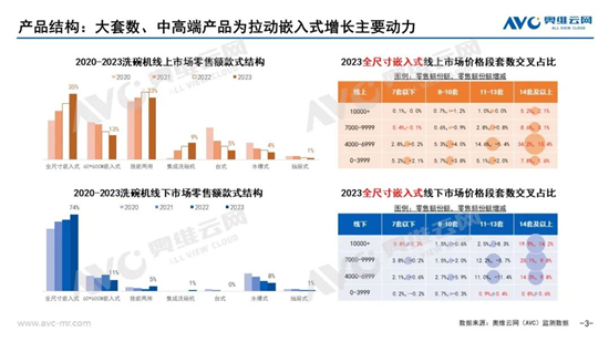 根據奧維云網(AVC)推總數據,2023年洗碗機線下渠道占比大幅增長,達到56%,洗碗機線上市場零售額占比僅為44.4%。因此奧維云網的結論是:洗碗機主要增長點來自于大連鎖和TOP渠道,是因為洗碗機作為新興品類,消費人群仍以一二線城市追求高品質生活的年輕中產為主。