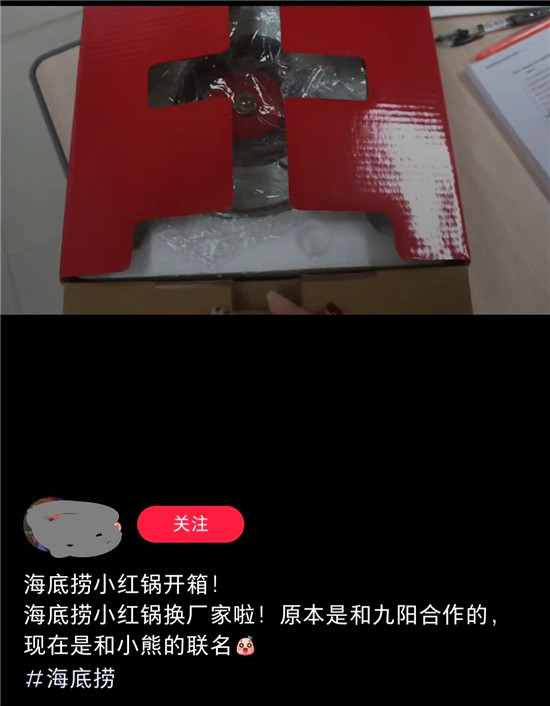 同時(shí),我們也可以關(guān)注到,小熊的品牌露出極少,整個(gè)產(chǎn)品名為“海底撈mini小紅鍋”,如果不是有個(gè)別網(wǎng)友“拆箱”分享,在社交平臺(tái)上小熊電器幾乎是沒有品牌露出的。