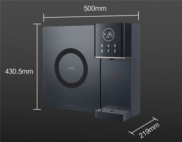 華帝餐邊柜凈熱一體機X700整個機身整體為黑色,配有玫瑰金的線條點綴,產品尺寸為500*430.5*219mm,搭配不同的家居設計風格都很和諧。