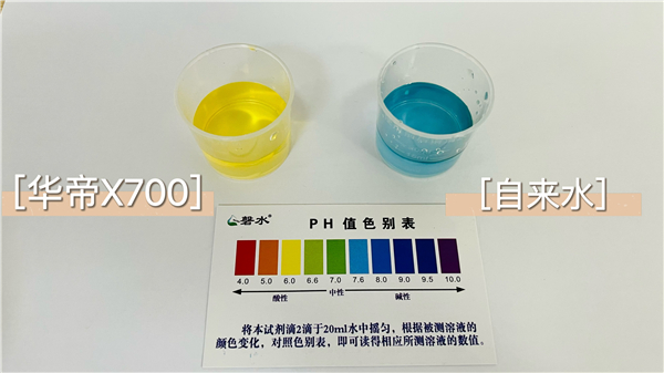 日常使用的自來水往往都要通過氯氣或含氯化合物對水進行消毒,在運輸過程中也存在二次污染的可能性,對此,評測將通過余氯試劑、重金屬試劑、酸堿度試劑分別測試華帝凈熱一體機X700出水和自來水。
