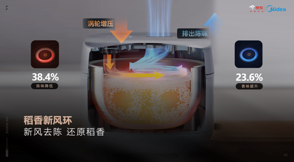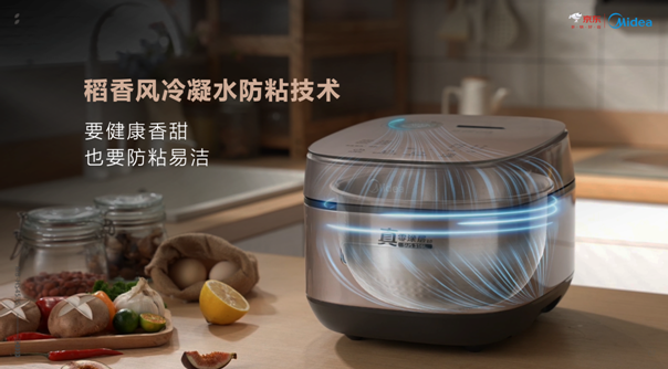 據悉,針對用戶痛點,美的在開創“稻香”系列電飯煲的基礎上,持續迭代創新,即將于今年AWE展發布赤炎稻香0涂層電飯煲,該款產品最大的亮點在于其內膽采用0涂層+稻香風冷凝水防粘技術,不僅內膽材質為母嬰級316L不銹鋼,電飯煲上蓋、蒸釜也都采用304不銹鋼材質,做到可接觸米飯的材質均無涂層。全域無涂層的設計,讓產品更加健康、耐磨。為了解決不銹鋼內膽普遍存在的米飯粘鍋難題,全新升級稻香風冷凝水防粘技術,利用紋理結構和風冷系統在內膽表現形成凝水膜,可減少米飯粘連,同時全膽采用三層一體化材質,均勻導熱,搭配文火防粘控溫曲線,有效破解不銹鋼內膽焦糊粘鍋問題,從而更好的為用戶飲食健康護航。