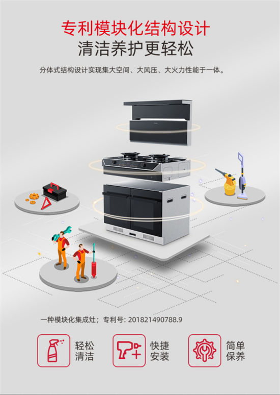 三“大”指的是大空間、大風壓、大火力。當下年輕人的住房小戶型居多,廚房空間往往有限,如何在有限的空間內實現功能最大化,美觀與實用并存?集成灶成了很多家庭的選擇,因為它可以集油煙機、燃氣灶、蒸箱、烤箱、消毒柜等多項功能于一身,這樣可以節省不少空間。