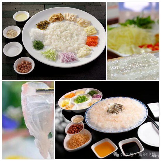 薄如蟬翼,輕可吹起,細刺已斷而肌理仍在,均勻鋪于冰盤之上,佐之油、鹽、檸檬草、花生米等數十種配料,再加上一點點鹽,一頓“撈起”,入口鮮嫩至極。入嘴爽口彈牙,滿口留香。