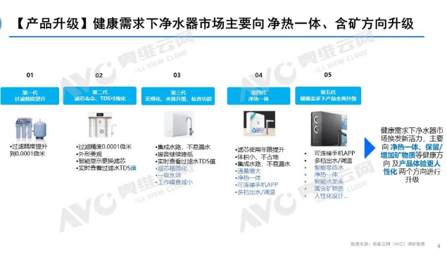 奧維云網(AVC)認為,含礦、凈熱一體及全屋凈水等健康凈飲水方案,是凈水市場的新發展機會點,預測未來在新方案的影響下,國內凈水行業將會迎來增長小高峰。