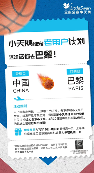 而據(jù)了解,此次小天鵝獨(dú)寵老用戶還推出額外福利,用戶只要分享自己和小天鵝的故事,就有機(jī)會免費(fèi)贏取今年夏天奧運(yùn)會期間前往巴黎的機(jī)票,讓每一個中國家庭在享受高品質(zhì)家電的同時,感知品牌的溫度與態(tài)度。