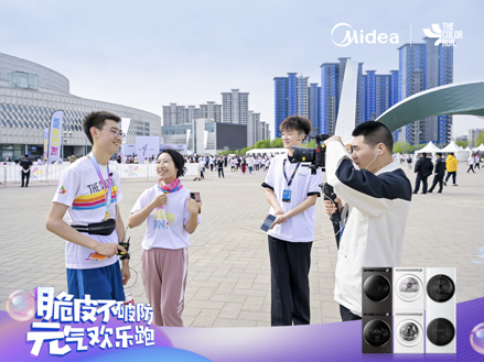 活動現場,跑者們不僅在5公里賽道上感受到了彩虹跑的獨特魅力,還在美的元氣滾滾洗烘體驗站內,近距離體驗美的元氣系列純平全嵌洗烘套裝(下文簡稱:美的元氣洗烘套裝)和美的清風明月PRO洗烘護一體機的強大功能。