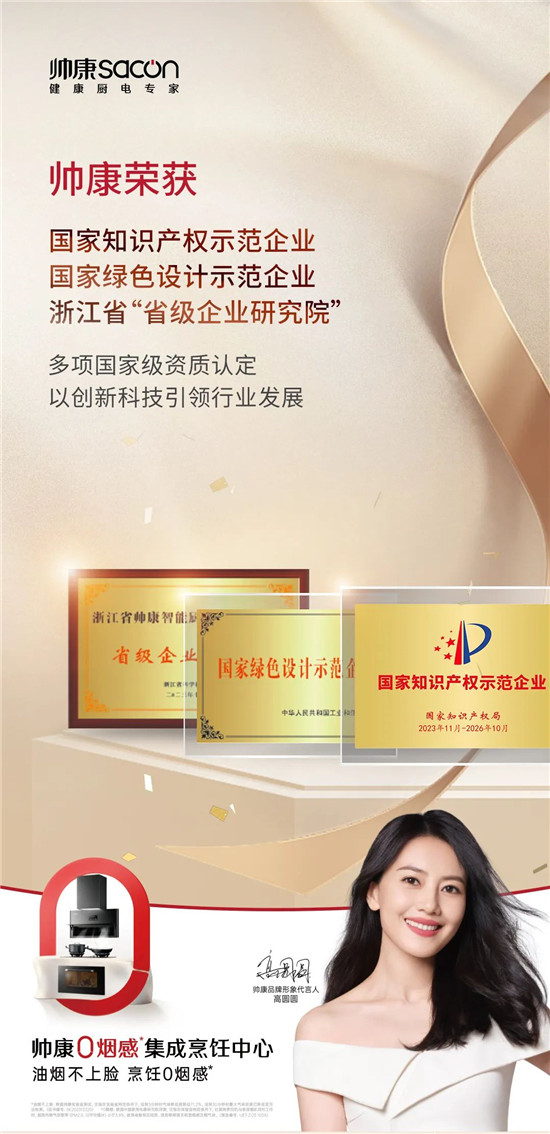 過去四十年,帥康作為健康廚電專家,一直以來致力于技術創新和產品研發,不斷推出引領行業發展的創新產品。此次獲得“國家知識產權示范企業”和“國家綠色設計示范企業”的資質認定,不僅是對帥康多年來在知識產權保護和綠色設計方面的積極探索和實踐的肯定,更是對其未來發展的鞭策和鼓勵。