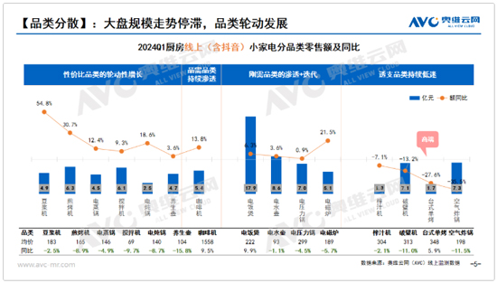 在眾多的小家電品類中品類呈現了多樣化的發展,但共同點是多數品類呈現均價下滑的情況。從整體品類表現上來看,規模體量相對較小的品類在2020年加速透支之后,在今年有所回暖例如電燉鍋、養生壺等品類;傳統大單品電飯煲依舊保持穩定小幅增長,但空氣炸鍋、烤箱、破壁機等品類依然受到高基數影響表現欠佳。