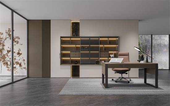 設(shè)計(jì)師以木飾面、金屬、玻璃等材質(zhì),將書柜布局為封閉式、開放式、半開放式,豐富了空間的層次感,讓空間安然舒適,清明簡靜,彰顯出書房的恢弘大氣,讓整個(gè)空間更加從容優(yōu)雅。