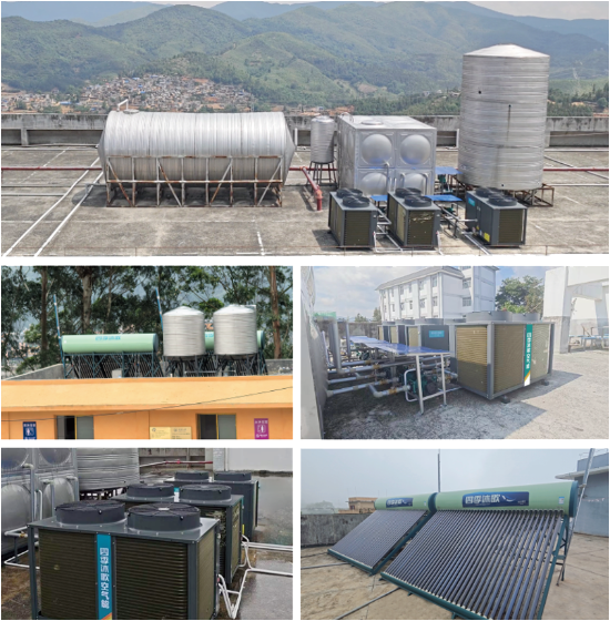 系統配置:四季沐歌空氣能+太陽能清潔能源耦合系統