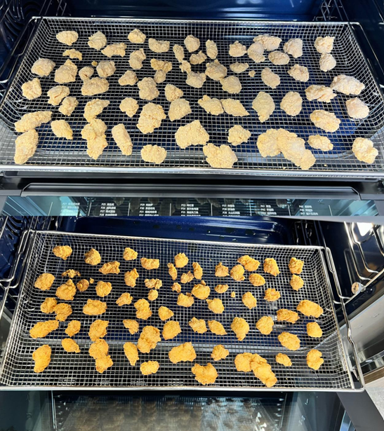 將半成品的雞米花放入烤箱,使用空氣炸模式,180℃,15min。