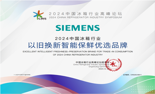 西門子家電榮獲2024中國冰箱行業以舊換新智能保鮮優選品牌獎