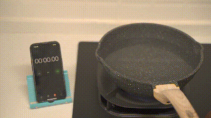 為了詳盡地測試5.2kW的大火力,準(zhǔn)備了燒水測試。僅僅用時3分40秒,便讓1000mL的自來水沸騰起來,其效率之高令人驚嘆。