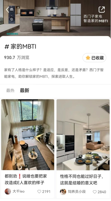 MBTI火爆的背后,是90后乃至更廣泛年輕群體對自我認同和個性化生活方式的不懈追求。聚焦這一現象后的深層次需求,西門子家電創造性地將MBTI人格理論與家居設計相結合,推出了“家的MBTI”這一主題,通過社交平臺上的互動話題,激發起了一股前所未有的家居改造熱潮。