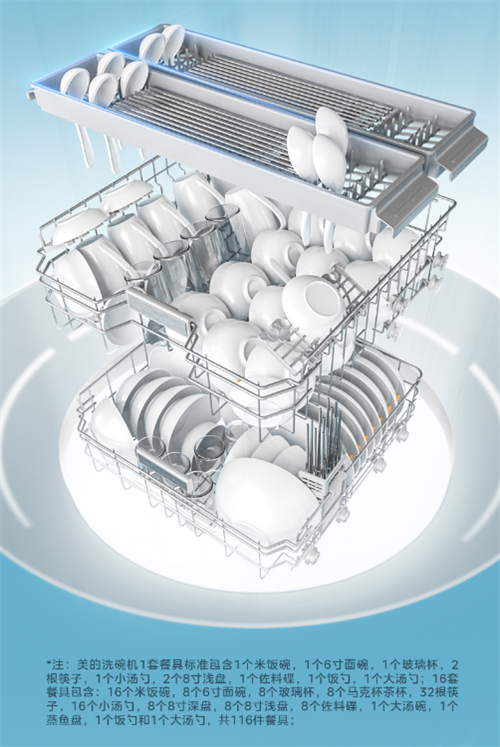 除了標準的16套餐具容量外,它還添加了靈動可調托盤設計,以適應各類中式廚具的多樣化需求。無論是日常使用的飯碗、碟子,還是更大的炒鍋、湯鍋,甚至是電飯煲內膽,都能在這款洗碗機的碗架上找到合適的位置。