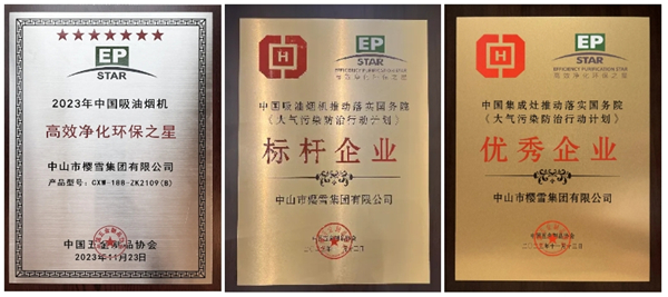 在23年11月26日,中國吸油煙機及集成灶行業技術大會暨“高效凈化環保之星”評價工作開展10周年慶典中,櫻雪集團榮獲中國吸油煙機推動落實國務院《大氣污染防治行動計劃》標桿企業,中國集成灶優秀企業,櫻雪更連續8年榮獲中國五金制品協會“高效凈化環保之星”榮譽。
