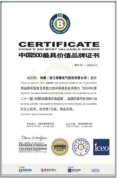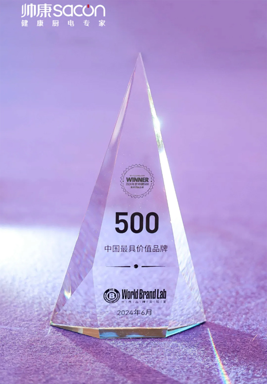 2024年6月19日 ,由世界品牌實(shí)驗(yàn)室和世界經(jīng)理人聯(lián)合主辦的2024 年(第二十一屆)世界品牌大會(huì)暨2024年(第二十一屆)中國(guó)500最具價(jià)值品牌發(fā)布會(huì)在北京盛大舉行,會(huì)上發(fā)布了2024年度(第21屆)“中國(guó) 500 最具價(jià)值品牌”榜單。作為健康廚電專家,帥康連續(xù)17年強(qiáng)勢(shì)入選榜單,在專業(yè)廚電品牌中位居前列,品牌領(lǐng)跑地位得到行業(yè)內(nèi)外的廣泛認(rèn)可。