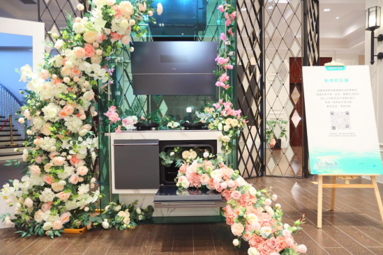 鮮花與美食,不僅能充分調動情緒和味蕾,治愈心靈,也象征著強烈的生活儀式感。本次私享會的環境布置頗有意趣,華帝以產品的時尚美學和青草、繁花的自然生命力相結合,打造出一個充滿活力的花園,處處可見生活美學的氣息。