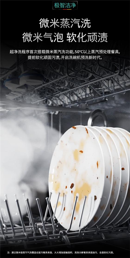 為了讓油污頑垢去除更加輕松徹底,西門子智凈魔方洗碗機(jī)還創(chuàng)新搭載了微米蒸汽洗功能。這一先進(jìn)功能可以在洗滌程序的前20分鐘釋放55℃的微米蒸汽,預(yù)先浸泡和軟化頑固污垢,使整個(gè)清潔過程更加高效徹底。微米蒸汽通過微小的蒸汽分子深入到油污內(nèi)部,瓦解難以清除的頑固污垢,達(dá)到深層潔凈。
