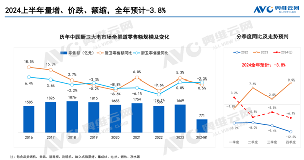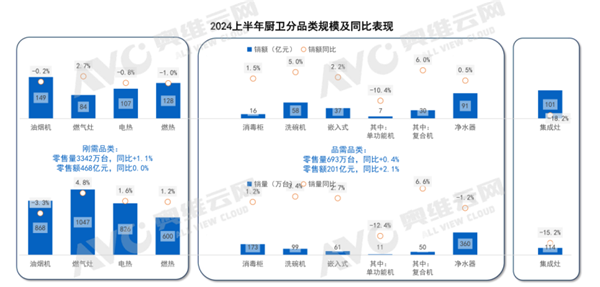就潮流家電網(wǎng)的調(diào)查而言,從體感上來看,2024年上半年度集成灶下滑比較明顯,分體式廚電小幅下滑,集成烹飪中心因為基數(shù)小,前景較為明朗。