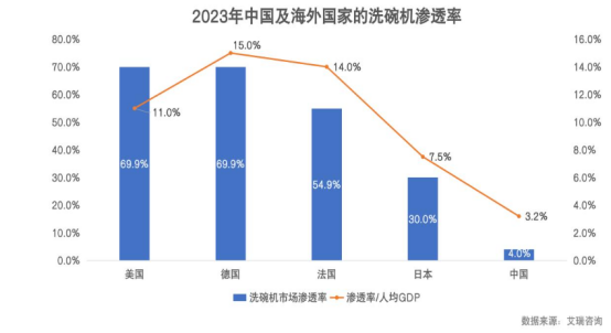 另一方面,目前國內洗碗機滲透率僅為4%,遠低于同為品質型廚電的烤箱(30.8%)。若以歐美市場高于50%的滲透率為參照,中國洗碗機市場應在千億規模。