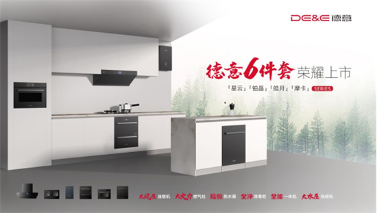 “德意六件套”是德意電器繼“黃金套餐”之后走“套系化產品”之路的重要創新,以“大風壓油煙機、大火力燃氣灶、除氯燃氣熱水器、蒸烤一體機、大水壓洗碗機、全凈消毒柜”六大產品為核心,在釋放廚房空間的同時,將美學無限放大,將功能無限集成,實現功能與顏值的高度融合。
