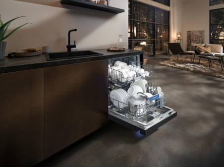 西門子極凈魔盒2.0洗碗機不僅在洗凈技術(shù)上實現(xiàn)了突破,更在烘干和儲存方面做到了智能創(chuàng)新。它采用了SMART AirTM開門烘干技術(shù),這一技術(shù)通過精確控制角度和溫度,實現(xiàn)了快速高效的烘干過程。當洗滌周期結(jié)束時,洗碗機會自動開啟一個9°的縫隙,讓內(nèi)部空氣流通,加速水分蒸發(fā),確保餐具內(nèi)外壁均能達到干爽的狀態(tài),有效避免了二次污染的問題。這一設(shè)計不僅呵護了餐具,還保護了櫥柜免受潮濕環(huán)境的影響,延長了櫥柜的使用壽命。