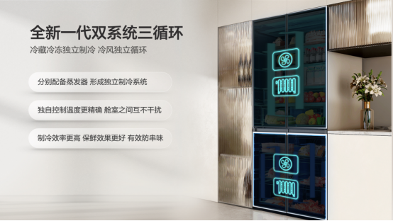 為解決異味及串味問(wèn)題,TCL T9 Pro搭載雙系統(tǒng)三循環(huán)技術(shù),冷藏室和冷凍室分別配備單獨(dú)的蒸發(fā)器,兩個(gè)區(qū)域擁有獨(dú)立制冷系統(tǒng),各自控制溫度。對(duì)比單系統(tǒng)冰箱一個(gè)蒸發(fā)器“肩負(fù)”兩個(gè)艙室的重任,這款雙系統(tǒng)冰箱不但讓艙室之間互相不受干擾,有效防止食材串味,而且制冷效率更高,溫度更穩(wěn)定,保鮮效果也能更好,食材可以長(zhǎng)期保持新鮮和營(yíng)養(yǎng)。