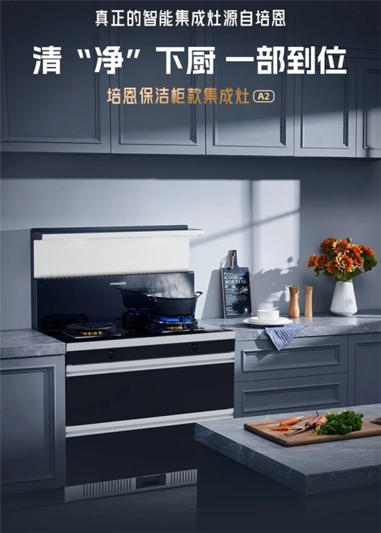 方寸之間見天地,細微之處有乾坤,1300+日夜研發探索,30次變頻算法迭代,培恩A2系列保潔柜集成灶重磅亮相,在第一代產品的基礎上深化和挖掘,A2集成灶集煙機、灶具、保潔柜等多功能于一體,節約廚房空間同時還提高了產品的使用效率,成就廚房不凡升級。