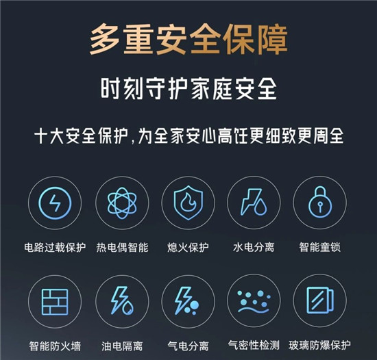 革新防護之力,筑起健康堡壘,智能防火墻系統、離子感應熄火保護系統、燃氣泄漏保護系統三大智能安全防護系統,24h智能伺服、感應、提醒,同時特設童鎖、漏電保護等安全保護,保障廚房安全新高度。