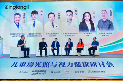 隨后,張作明教授主持了主題為“兒童房照明與視力健康”的圓桌論壇,陶勇教授、上海市眼防所臨床研究中心陳軍、北京兒童醫院眼科主任醫師余繼鋒、寶寶樹總裁趙潔、琪朗健康光研究院技術總監王銳勛參與圓桌討論。專家們就兒童青少年近視防控、兒童房的照明配備、健康光研究等問題進行了探討。