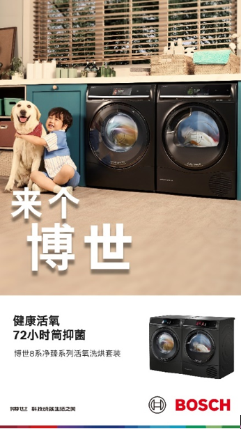 博世8系凈臻系列活氧洗烘套裝的洗衣機搭載滾筒72小時長效抑菌,實力守護全家的衣物除菌潔凈——為實現洗衣機滾筒的深層潔凈,產品通過強力活氧氣體滲透滾筒縫隙,可抑制細菌再生達72小時,讓衣物洗滌安心升級。