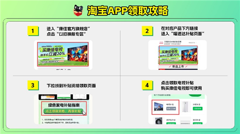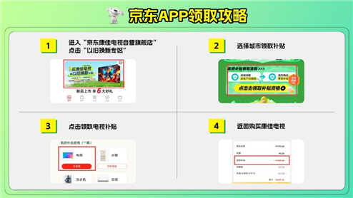 那么,康佳電視線上以舊換新補貼怎么領、怎么下單使用呢?很簡單,四步走即可搞定。