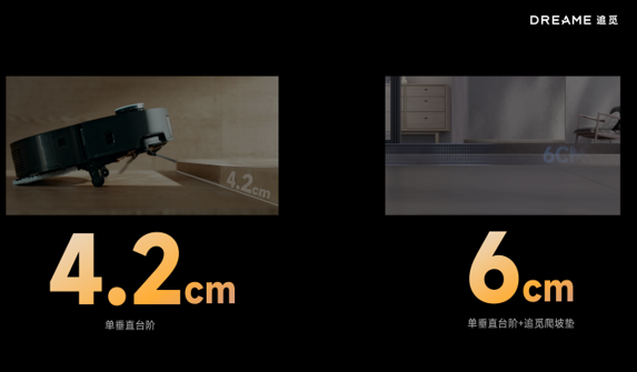 此次發布的追覓X50系列掃地機器人,搭載追覓全球首創“仿生機械足越障技術”,靈感源自輪足機器人,實現了單層垂直臺階最高越障4.2cm、增加追覓爬坡墊后越障6cm的驚人越障能力。在輪轂電機驅動與雙節擺臂系統支撐的雙重組合下,機器人的“腿”可伸長一倍,當遇到障礙物時,小輪會先將機器撐起,隨后驅動機器向前滑動,實現了從“爬行”到“行走”的飛躍。