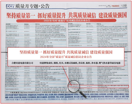 培恩積極響應2024年“質量月”活動號召,深入開展“質量月”系列活動,榮評2024年全國“質量月”質量誠信倡議企業,獲多家權威媒體報道。