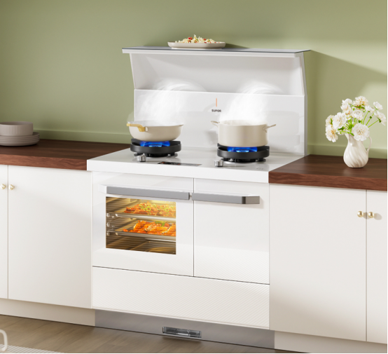 蘇泊爾以白色為主打的廚電套系,從油煙機、灶具延展至凈水機、熱水器,全面滲透并優化了現代廚居生活的每一個角落,延續了對市場需求變化的敏銳,更是其深厚技術實力與前瞻設計理念的雙重展現。