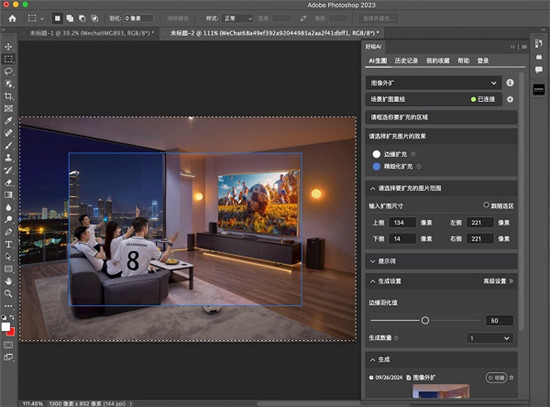 此外,還有智能擴圖功能,小場景一鍵擴充,秒變大場景。AI能夠智能地補全擴展部分的內容,得到更大的圖像同時保持視覺風格一致,節省設計師手動修復的時間和精力。