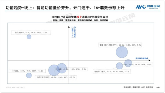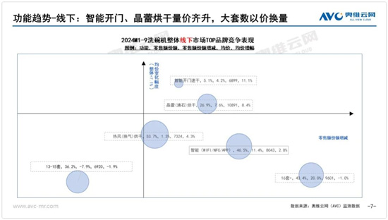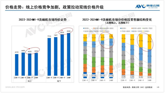 從價格上看,雖然今年線上市場整體出現一定的價格降級趨勢,但是以舊換新政策對9月市場的價格結構拉動明顯。奧維云網(AVC)監測數據顯示,2024年9月,洗碗機線上市場6000元以上價格段零售額占比為25.7%,較今年1-9月整體增長2.8個百分點;洗碗機線下市場10000元以上價格段零售額占比為34.0%,較今年1-9月整體增長4.1個百分點。以舊換新政策的實施拉動雙線市場的價格升級。