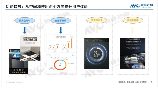 隨著消費者對家電產品的使用訴求不斷升級,洗碗機在智能化、烘干多樣化和空間合理化等方面進行了顯著迭代。首先,在智能化方面,無論是線上還是線下市場,搭載先進智能系統的洗碗機日益受到青睞。越來越多的智能洗碗機支持通過手機APP進行遠程控制與預約洗滌,并能夠根據餐具的臟污程度自動調節洗滌模式,以提升用戶體驗和操作便捷性。