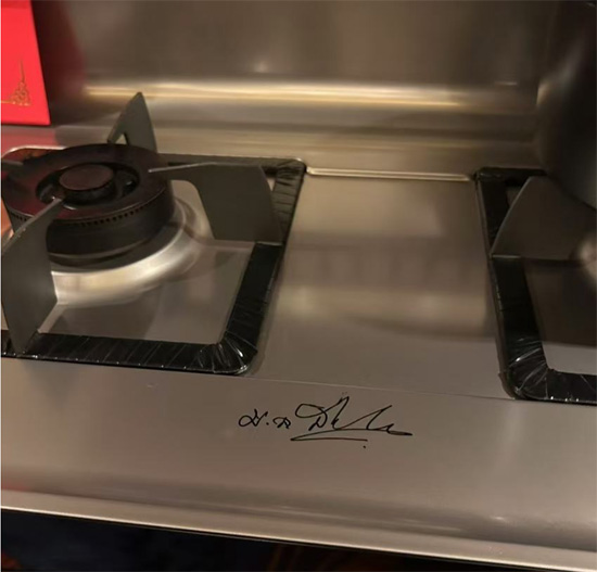 善猜親王還在北斗星一體不銹鋼集成臺面上簽下了自己的名字,以表達對北斗星堅守品質的認可。也鼓勵北斗星,不斷探索、推陳出新,持續投入研發,秉承著“我是你的廚房專家”的品牌理念,為消費者提供更多更集成化、智能化、人性化的廚房場景的高品質產品。