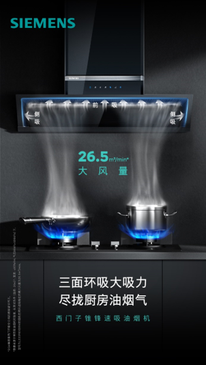 在核心技術方面,西門子錐鋒300速吸油煙機搭載了德系強排變頻電機,以高效的吸力和靜音性能滿足了用戶對廚房清潔與使用舒適性的雙重需求。產品具有26.5m³/min的大風量以及高達1300Pa的風壓,即使是在需要強力排煙的情況下,也能保證穩定、持久的吸排效果。這一性能尤其適合高層建筑廚房用戶,無論樓層高度或油煙管道的排放難度,西門子錐鋒300速吸油煙機均能迅速將油煙排出,創造無油煙困擾的清新空間。
