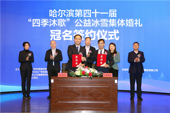 集體婚禮冠名簽約暨新人征集啟動儀式在哈爾濱隆重舉行。本次活動由中共哈爾濱市委宣傳部、共青團哈爾濱市委員會、哈爾濱市文化廣電和旅游局、哈爾濱市民政局、哈爾濱市衛(wèi)生健康委員會、哈爾濱廣播電視臺、哈爾濱日報社、馬迭爾文旅投資集團主辦,哈爾濱青年宮承辦,四季沐歌集團總冠名。旨在助力哈爾濱國際冰雪節(jié)等旅游文化時尚活動開展,服務(wù)青年群體,引領(lǐng)婚禮文化時尚,創(chuàng)新婚禮文化活動品牌,提升城市文化軟實力。