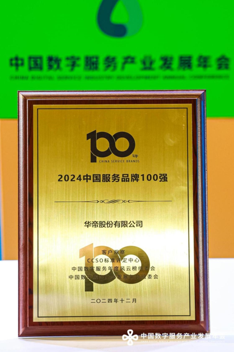 歷經300多天的嚴格篩選和專業測評,通過社會公開投票以及科學評審,華帝股份有限公司共斬獲兩項大獎,分別為“2024中國服務品牌100強”、“2024年度客戶口碑獎”。