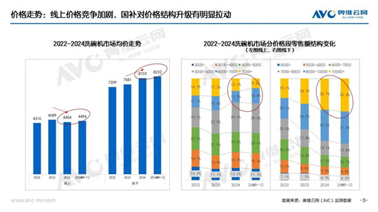 此外,奧維云網(wǎng)(AVC)監(jiān)測數(shù)據(jù)還顯示,2024年9-12月,洗碗機線上市場6000元以上價格段零售額占比為24.4%,較1-9月增長1個百分點;線下市場10000元以上價格段零售額占比為32.3%,較1-9月增長1.6個百分點。這些數(shù)據(jù)進一步印證了高價位段洗碗機市場,在以舊換新政策下的強勁增長態(tài)勢,以及消費者對高性能洗碗機的強烈需求。