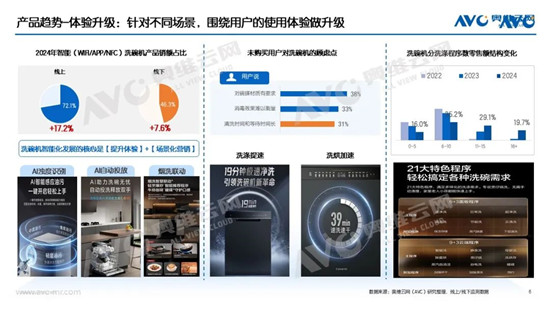根據(jù)奧維運網(wǎng)(AVC)的調(diào)查數(shù)據(jù),還未購買洗碗機的用戶普遍存在三大購買顧慮,有38%不滿洗碗機限制碗碟材質,33%認為消毒效果難以衡量,還有31%的人群認為清洗和等待時間過長。為了消除這些顧慮,洗碗機廠商在2024年紛紛引入了WIFI等智聯(lián)功能、AI自動投放、洗滌洗烘提速以及滿足不同場景的多程序洗滌功能等創(chuàng)新技術。