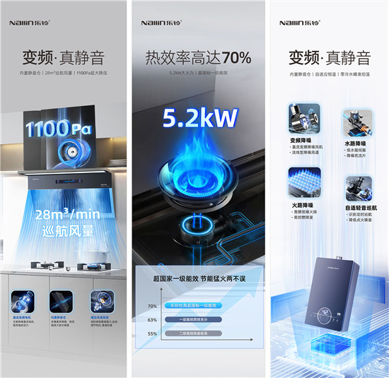 目前,樂鈴已經和業內頂尖設計機構強強聯手,從發布的2025年新品來看,皆是對“健康生活”理念的持續探索,其中煙機主打變頻、靜音和能效,灶具主打新一級能效,燃氣熱水器主打變頻和靜音。