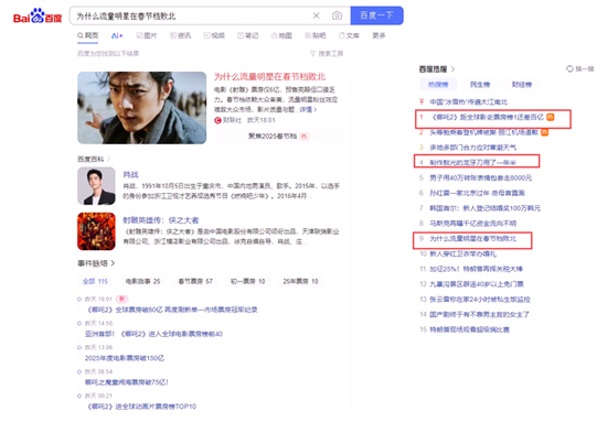 而與此形成鮮明對比的是“為什么流量明星在春節檔敗北”同樣上了百度熱搜。