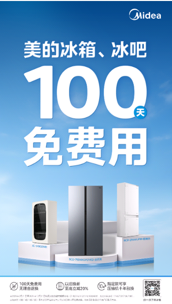 (配圖文字:作為行業內首推"百天試用"政策的企業,美的冰箱的退換服務周期從常規7天延長14倍。)