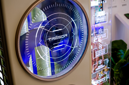 現場璀璨中央空調以透明面板展現其內部核心部件,其中包括日系壓縮機和冷媒散熱部件、四通閥等,均為一線品牌并以精工標準打造,可見璀璨中央空調對其品質的嚴格把控。不僅如此,還以可視化形式展現其最新技術原理,如Hi-nano Ultra健康模塊的凈化過程,輔助消費者深入了解。